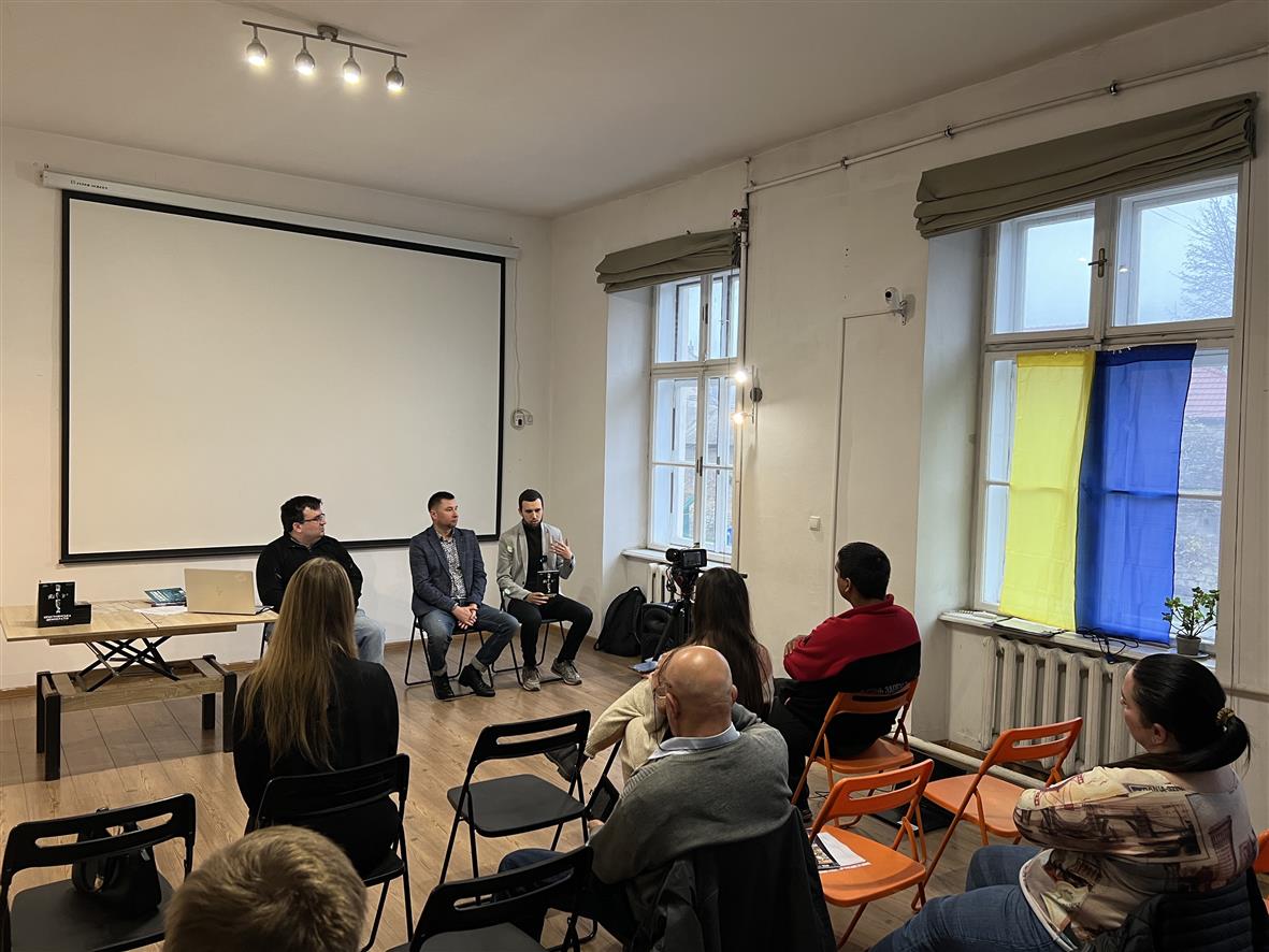 Віцепрезидент Фонду сприяння демократії Юрій Гончаренко презентував основні напрямки діяльності, зокрема – видавництво книг, освітні проекти та ініціативу InfoLight.UA, в якій за підтримки Фонду Ганнса Зайделя в Україні відбуваються онлайн-тренінги з інформаційної гігієни, фактчекінгу, громадян вчать інформаційній безпеці та вмінню здійснювати інформаційний опір російській пропаганді.