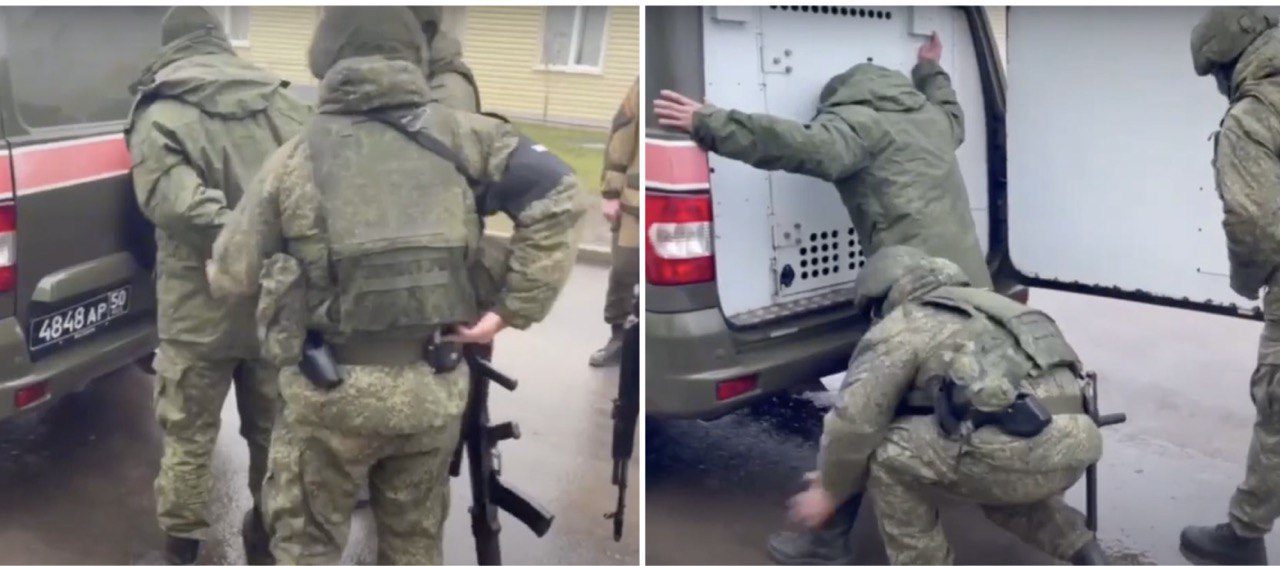 Обох військових обшукали та посадили в автозак після повідомлення про затримання, Бєлгород, РФ, листопад 2022 Кадр з відео