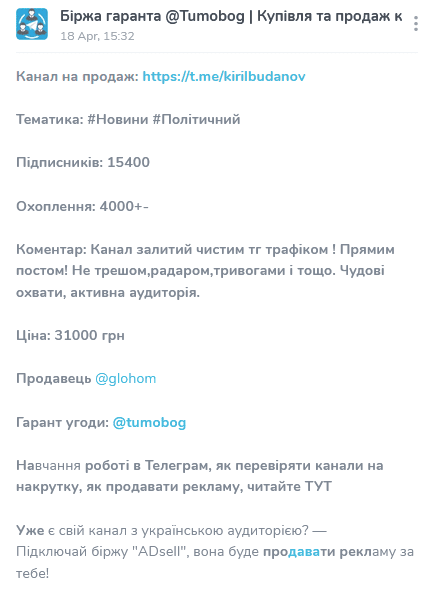 Ми перевірили історію каналу та встановили, що орієнтовно в середині квітня 2023 року його продавали.