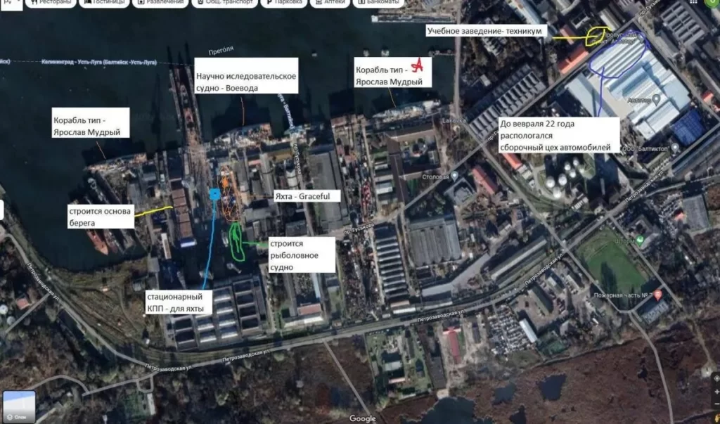 “Русмонітор” оприлюднив документи щодо яхти Graceful, яка належить президенту росії володимиру путіну. Видання стверджує, що знімки були люб’язно надані каналами Головного управління розвідки Міністерства оборони України (ГУР). На фотографіях видно, що судно перебуває на заводі “Янтар” у Калінінграді, що підтверджується не тільки розвідувальними даними, а й супутниковими знімками.