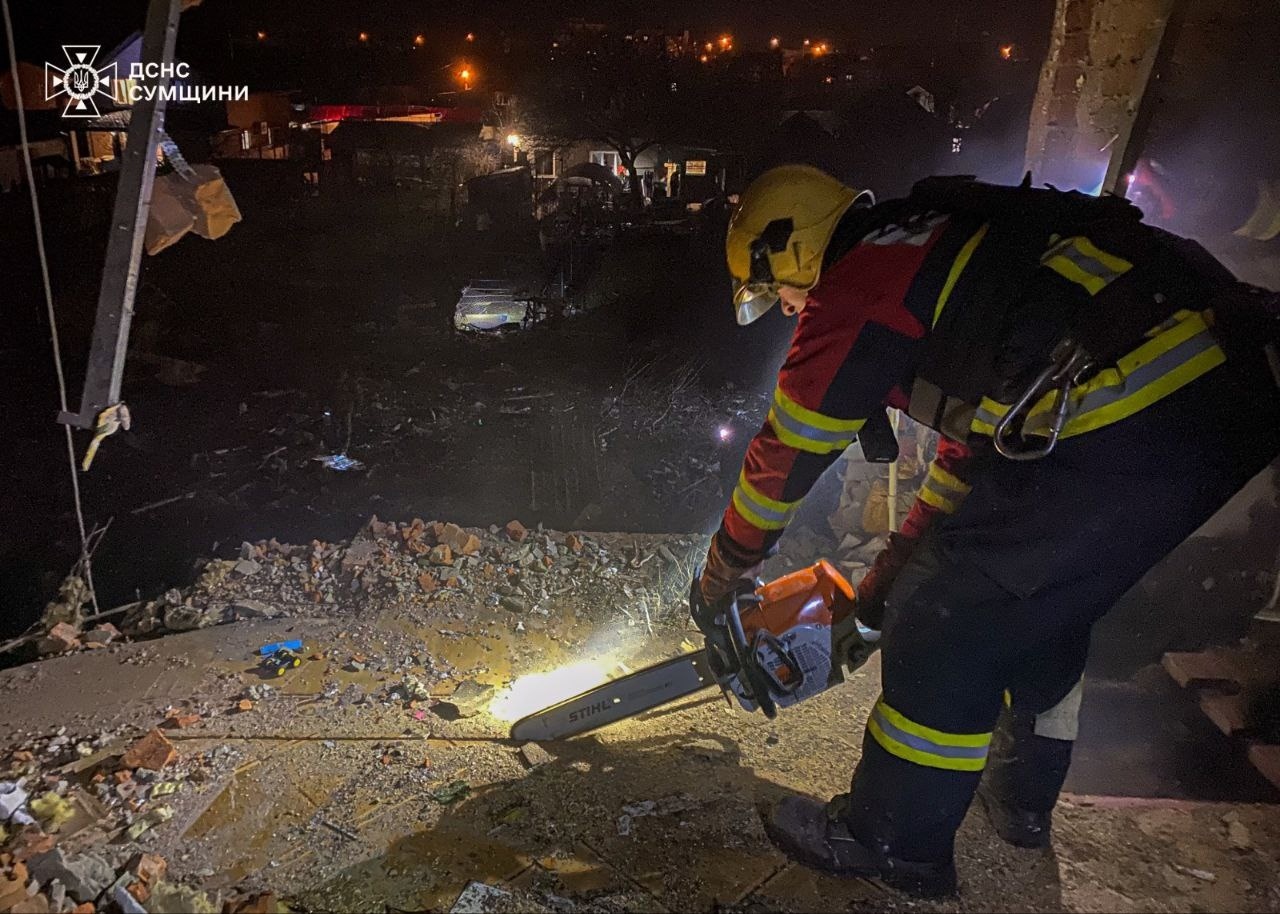 Рятувальники ліквідували загоряння та обстежили територію по якій було нанесено удар. Попередньо пошкоджено 13 приватних житлових будинків.