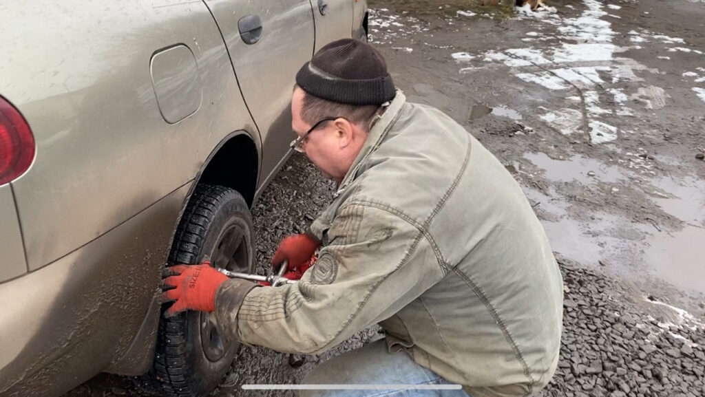 На щастя, у Кириківці є майстри з місцевого СТО, які відгукнулися на наше прохання про допомогу. Незважаючи на те, що їхнє обладнання для ремонту коліс вийшло з ладу і вони практично не працювали, чоловіки вручну залатали колесо. Їхні вмілі руки й небайдужість стали для нас справжнім порятунком. Проте майстри відверто порадили не їхати на такому колесі до зони активних бойових дій, у якій знаходиться Великописарівська громада, оскільки це було б надто ризиковано.