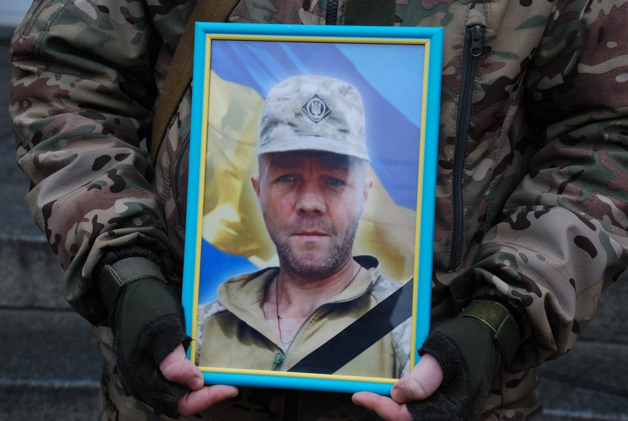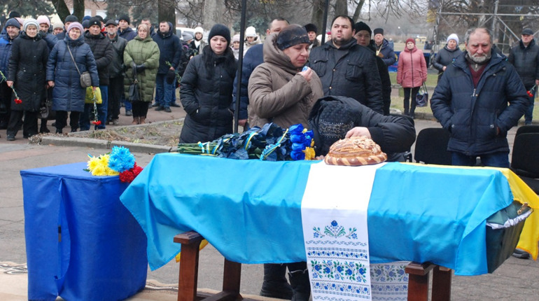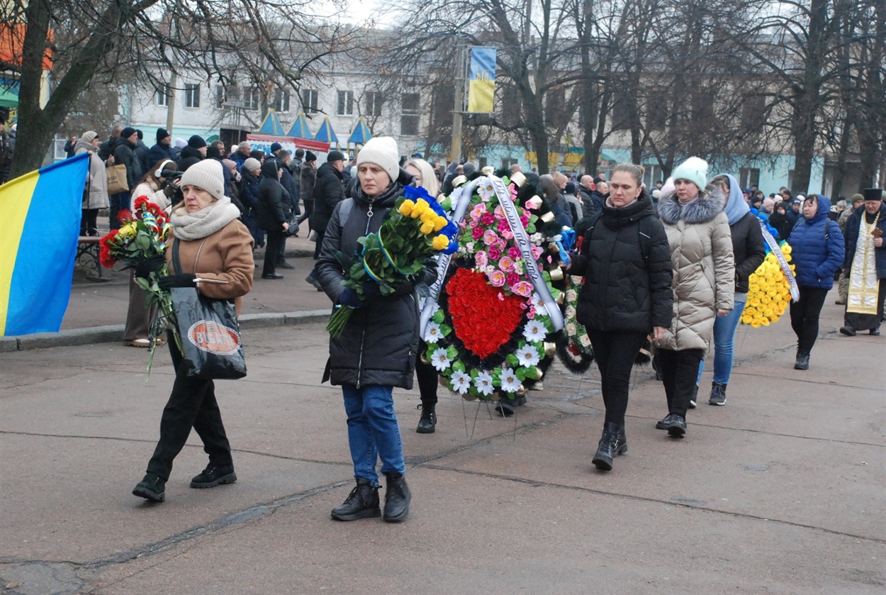 Присутні на траурній церемонії стали на коліна, прощаючись з Героєм. Поклали квіти до його труни, а потім провели в останню путь Дорогою слави.