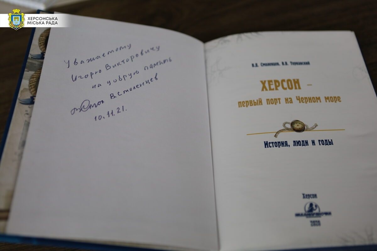 За три місяці до окупації Херсона Володимир Смоленцев подарував свою книгу Херсонській міській раді та міському голові Ігорю Колихаєву, який нині перебуває в полоні росіян.