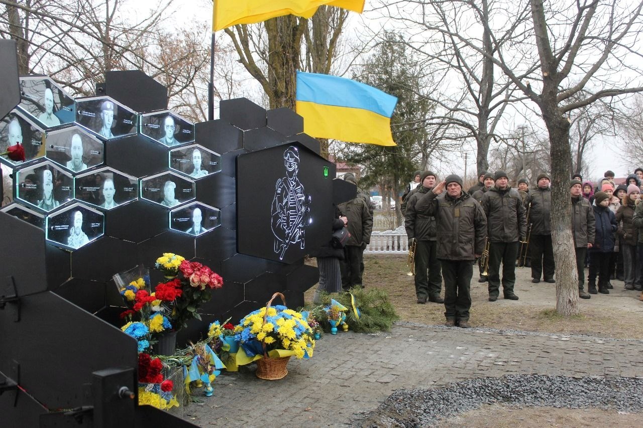 На меморіальному комплексі – 15 портретів загиблих військовослужбовців.