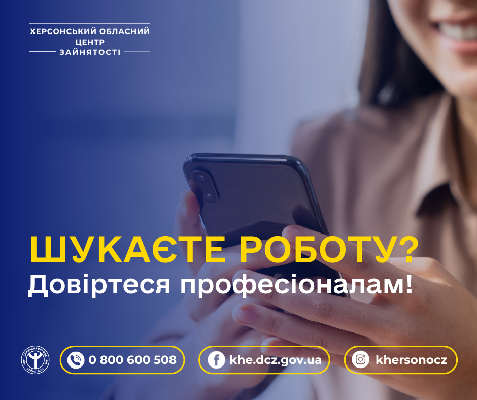 Безкоштовна «гаряча лінія» Херсонської обласної служби зайнятості: 0 800 600 508. Звертайтеся! Раді допомогти та бути корисними для вас!