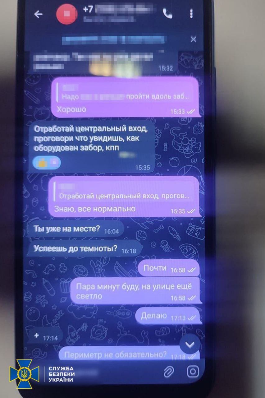 Зловмисник проводив розвідку місцевості, визначав найбільш вразливі об’єкти та передавав їхні координати ворогу. Після затвердження цілей він мав отримати детальні вказівки щодо виготовлення саморобного вибухового пристрою з дистанційним підривом.