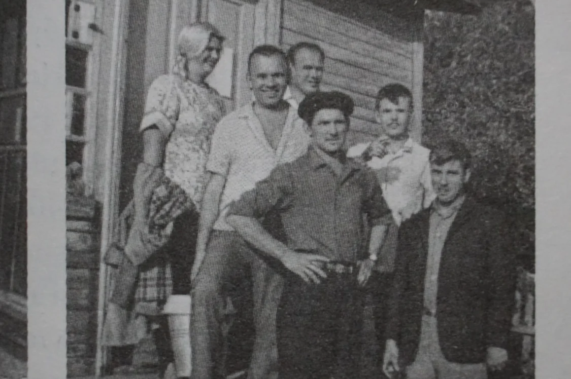 Моє припущення підтвердив Віктор Келеп: “На передньому плані я — тоді молодий, з глуповатою усмішкою”. Ще двоє, ймовірно, помічники Горської і Зарецького, які приїхали до села разом із ними. Але є ще один чоловік, про якого я нічого не знайшла. А ще цікаво — де було зроблене фото?