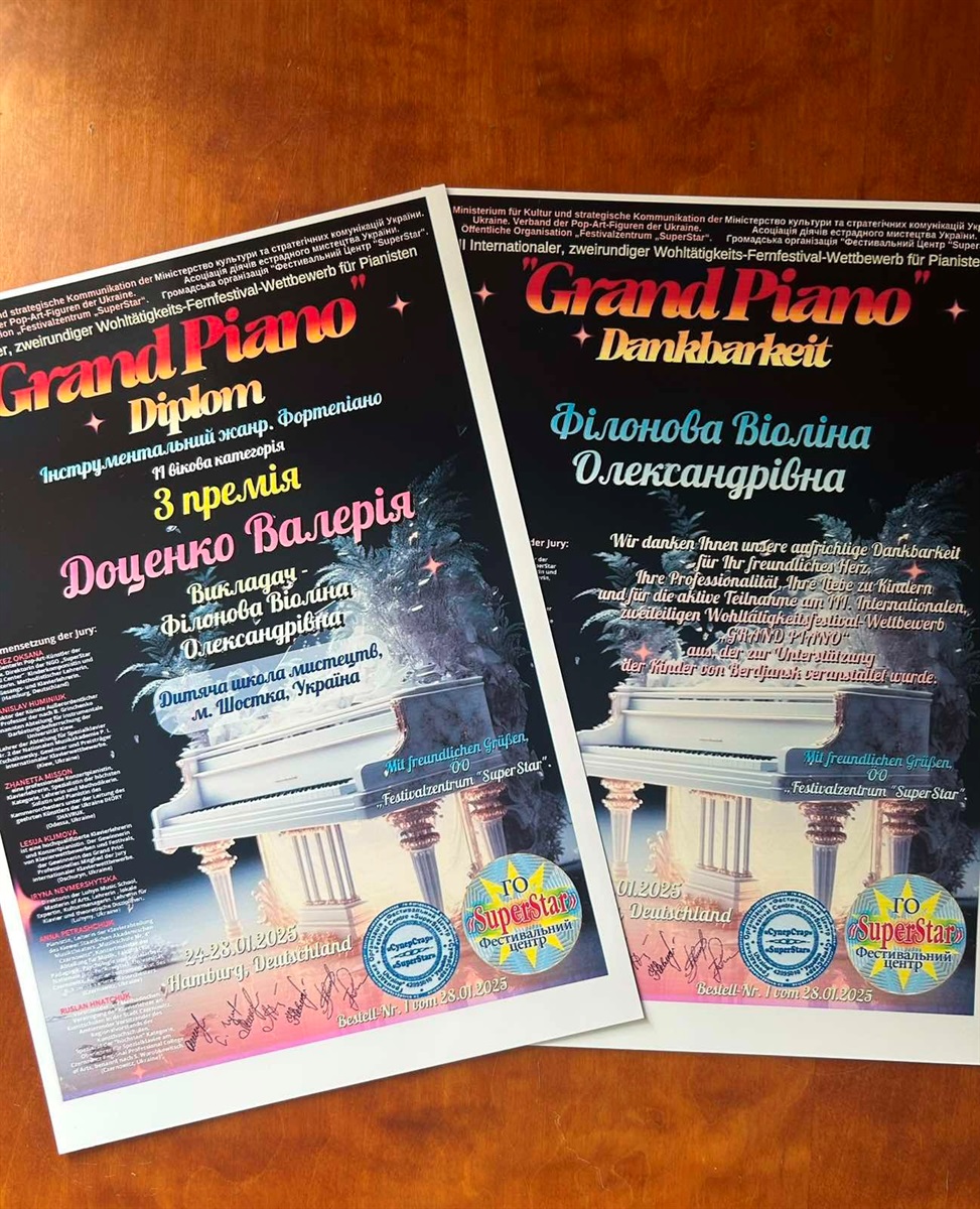 Валерія Доценко, талановита юна піаністка, яка опановує гру на фортепіано в Дитячий школі мистецтв під керівництвом викладача Віоліни Філонової, здобула неймовірні успіхи на міжнародних та всеукраїнських конкурсах. Її талант та наполеглива праця принесли їй заслужені перемоги та визнання.