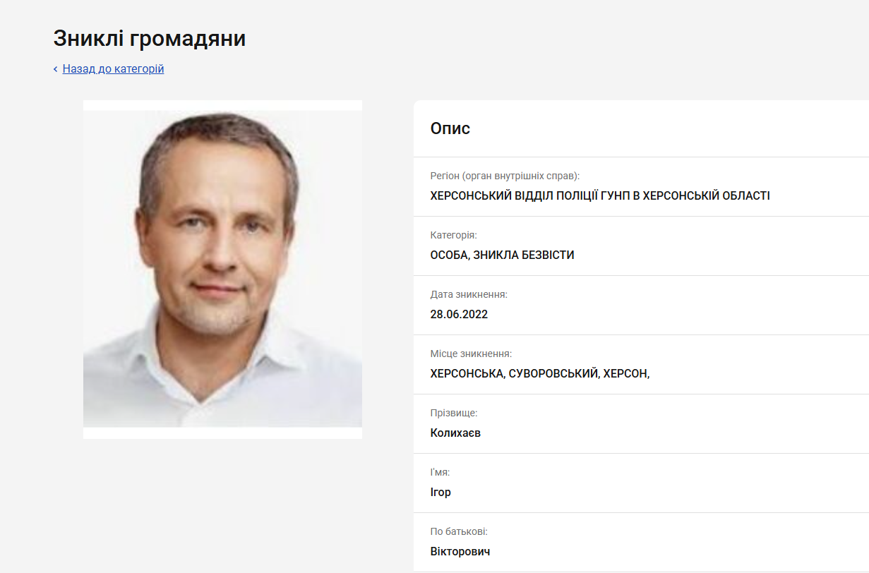 Ігор Колихаєв у базі зниклих