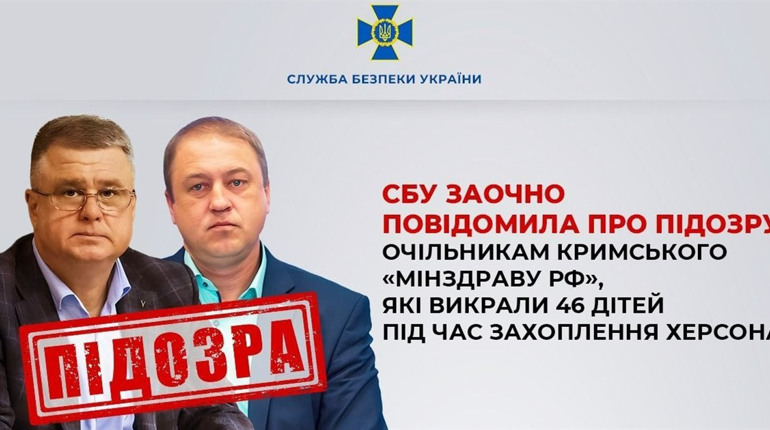 Як повідомляє Служба безпеки України, йдеться про Костянтина Скорупського – так званого «міністра охорони здоров’я Криму» та його заступника – Антона Лясковського. За матеріалами справи, протягом тимчасової окупації Херсона фігуранти вивезли з місцевого дитячого будинку до Сімферополя 46 малолітніх дітей. Для цього Скорупський та Лясковський прибули до захопленого на той час міста, де організували автобуси, якими переправили дітей, які були віком від одного до п’яти років, на територію півострова.