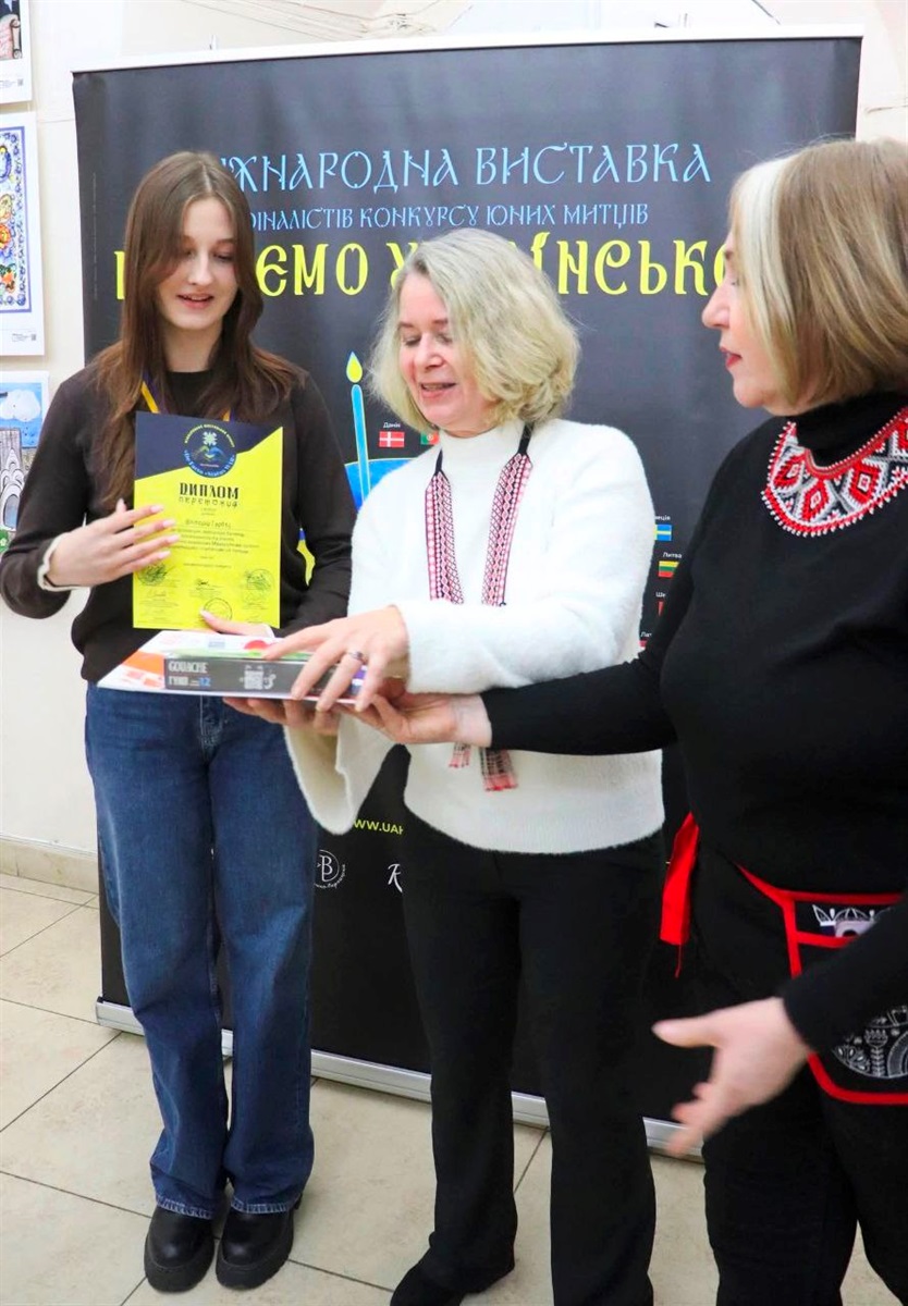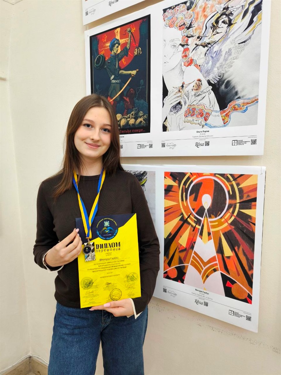 У Національному музеї декоративного мистецтва України відбулося відкриття виставки переможців міжнародного мистецького проєкту «DE FACTO STATUS WAR», присвяченого роковинам повномасштабного російського вторгнення в Україну. Серед переможців – учениця 10-А класу школи-ліцей і вихованка Дитячої школи мистецтв (викладач Ольга Сергієнко) Гарбуз Вікторія, яка посіла 2 місце.