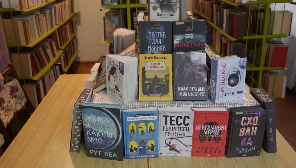 Олена Мариневська демонструє ще одну гордість бібліотеки – добірку сучасних детективів зарубіжних і українських авторів. Усі ці книги з’явилися у закладі теж завдяки дарувальникам. “Наші читачі дуже люблять твори Андрія Кокотюхи, Олени Печорної, Рут Веа, Тесс Геррітсен, Донато Каррізі, Пенелопи Дуглас та інших авторів”, – говорить пані Олена.