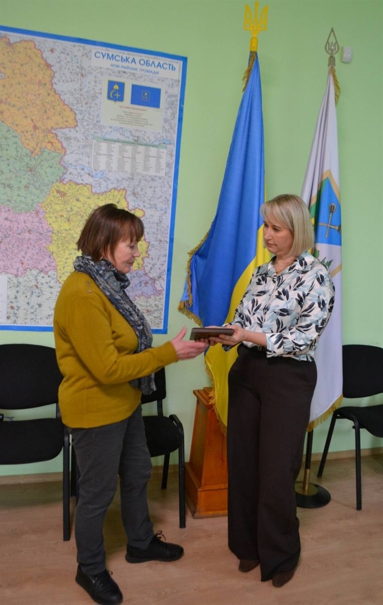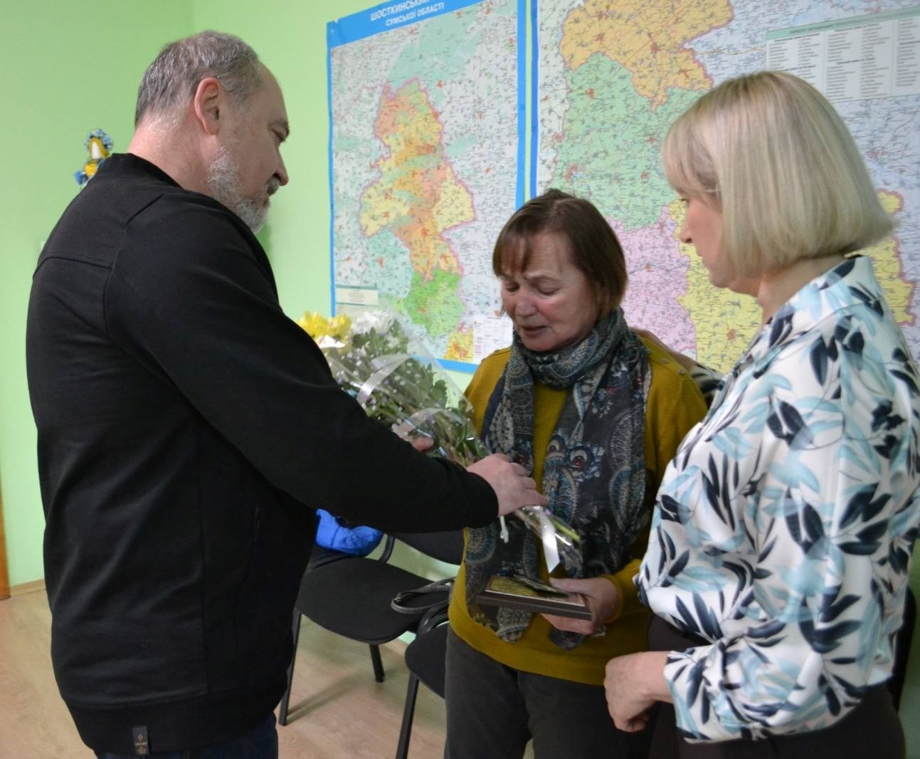 Сьогодні тимчасово виконуючий обов’язки голови Шосткинської районної державної адміністрації – начальника районної військової адміністрації Оксана Тарасюк вручила від імені керівництва військової частини А0409 погон «лейтенат» та пам’ятну дошку матері загиблого молодшого лейтенанта – Дмитра Володимировича Петренка.