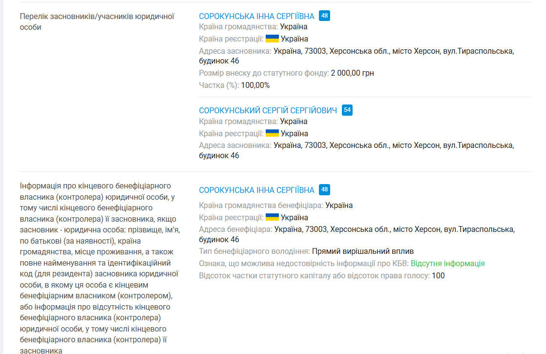 Сергій Сорокунський-старший серед ключових осіб фермерського господарства наразі не фігурує