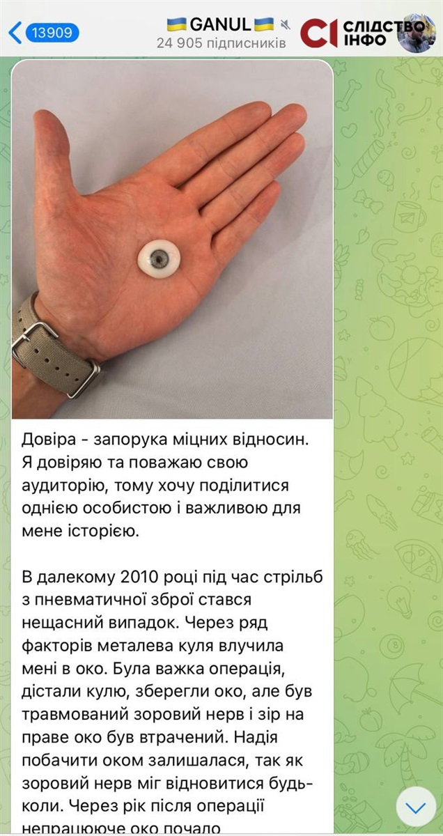 Про відсутність одного ока Дем’ян Ганул розповів у своїх соцмережах у 2024 році