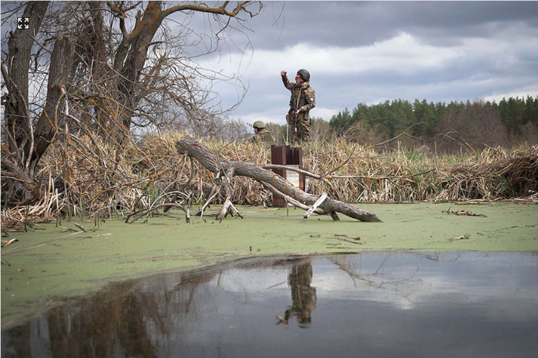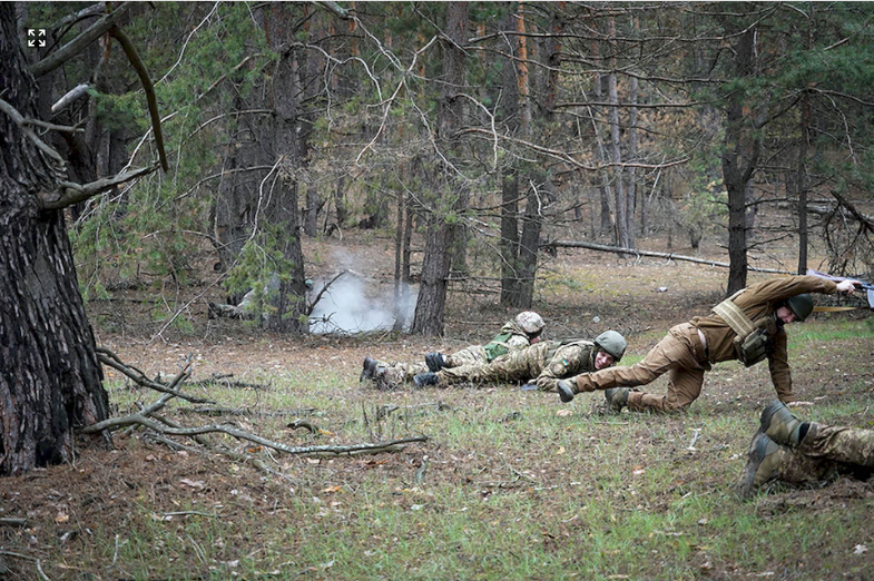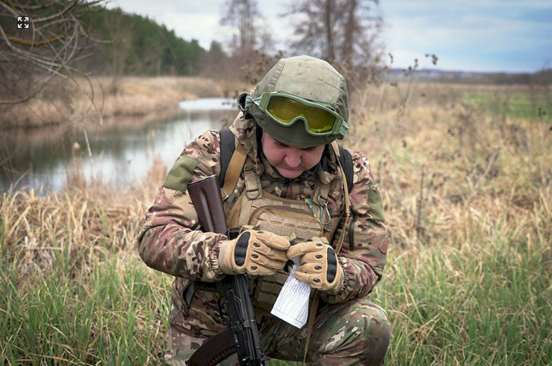 «На дві проблемні точки вийшли достатньо рівно. По часових показниках група рухається дуже швидко. За дві години пройшли дев’ять точок. Переправу подолали швидко, і без втрат особового складу та амуніції. Загалом вони мають пройти 15 точок, попереду ще купа проблемних ділянок. Під час руху застосовуємо імітаційні засоби — піротехнічні гранати. Чесно кажучи, ця група дуже свідомо підійшла до виконання завдання, поставилася до нього, як до бойового», — коментує головний сержант Східного Харківського територіального управління Максим Кісельов