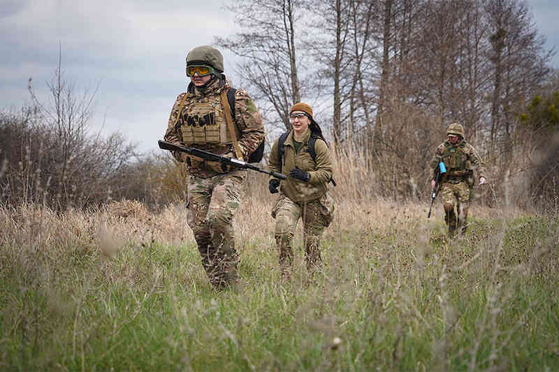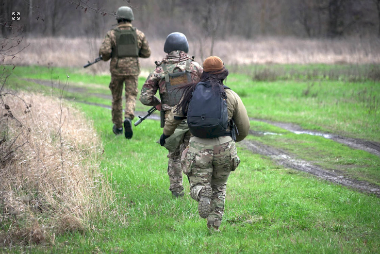 «Дотримуємось тиші, комунікацію здійснюємо знаками, тому не розтягуємося сильно, бо ми маємо бачити одне одного та дублювати команди. Скупчення також уникаємо. Дистанція між нами 10-15 метрів. Відкриті місцевості долаємо якомога швидше. Контролюємо кожен свій сектор та небезпечні напрямки», — дає настанови перед маршем головний сержант підрозділу Катерина.