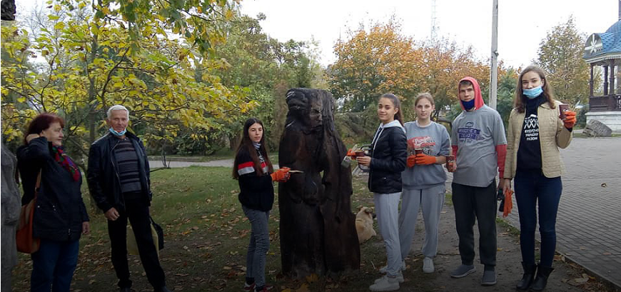 — Побачив заяву і вирішив, це те, що нам треба. Так молодіжна організація Охтирки долучилась до всеукраїнської молодіжної спільноти БУРу. Для початку вирішили рятувати дерев’яні скульптури. Я надіслав запит у міську раду, там дали дозвіл і сприяння нашій толоці. Це було у жовтні 2020 року. Я вважаю, що ці скульптури – історично-культурна складова нашого міста. Зараз вони виглядають жахливо, але ж їх можна врятувати, подовжити їхнє існування. І в них така цікава історія. Я проконсультувався у знайомих спеціалістів по дереву, що потрібно робити в першу чергу. А далі буде далі. Перша толока ОМЦ «Врятуємо дерев’яні скульптури!» відбулася.