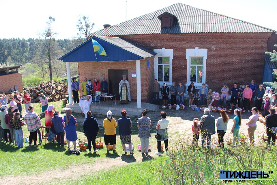 Після освячення пасок у Тростянці, отець Роман провів святкове богослужіння і в Становій, на подвір`ї біля будинку культури.