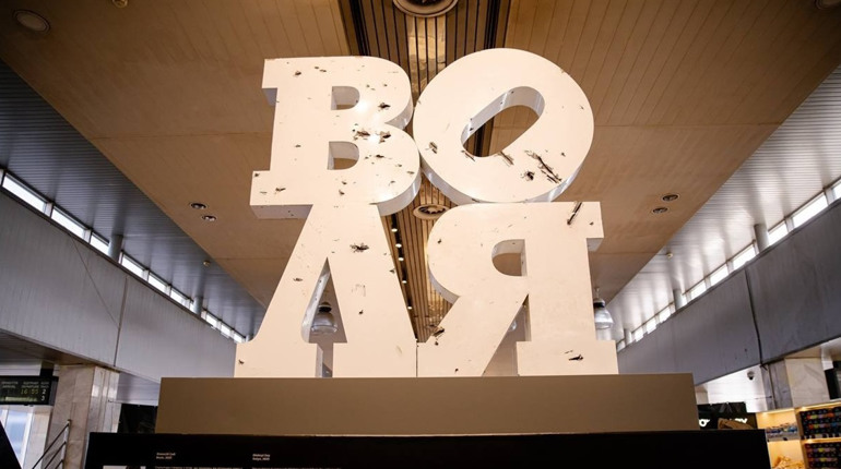 На Центральному вокзалі Києва відкрили скульптуру «Воля» — мистецький символ спротиву, виготовлений із букв зруйнованого вітального знака села Любимівка на Херсонщині. Про це повідомляє Укрзалізниця.