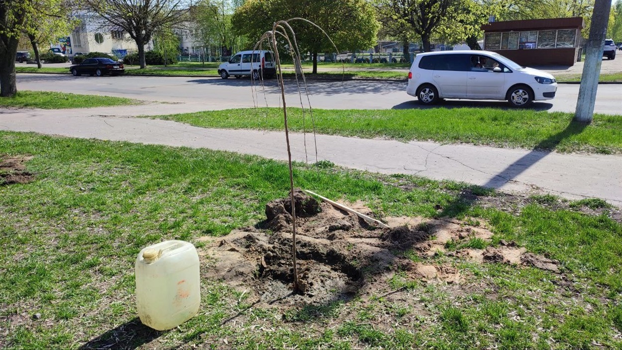 “Ми хотіли, щоб дерева були невеликі, але красиві, – пояснює пан Віктор. – Гілки шовковиці плакучої спадатимуть донизу, наче дощ. Крона японської верби матиме форму кулі. Взимку вона стане червоною, як кров наших загиблих хлопців”, – розповідає Віктор Миколайович.