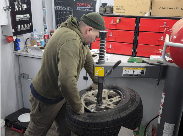 На передовій часто немає доступу до стаціонарних СТО або шиномонтажних станцій. При цьому техніка постійно потребує обслуговування — особливо колеса: пробиті шини після артобстрілів, деформовані диски від розбитих доріг, зношення гуми при інтенсивній експлуатації.