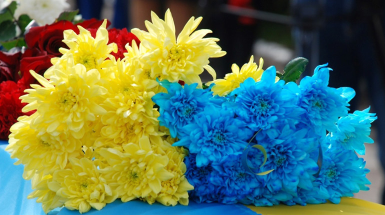 Серед українських стягів люди вшановують полеглого героя, несуть квіти і прощаються, проводжають до місця останього прихистку на Алеї Слава.