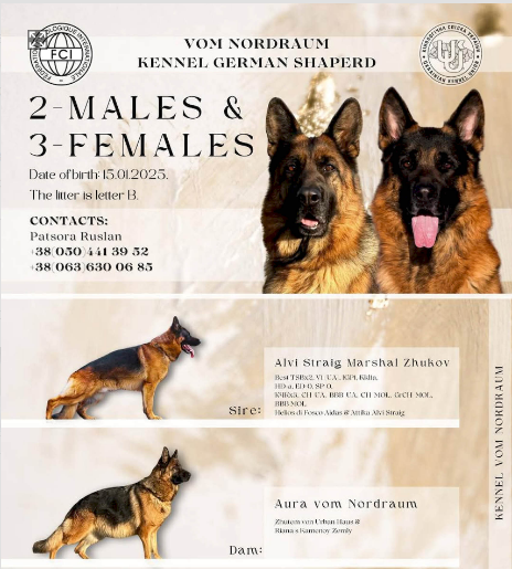 А далі трапилось несподіване… Виявилось, що в Україні на одному з телеканалів матеріал про кінологів 5 Слобожанської бригади «Скіф» НГУ переглянули володарі титулованого розплідника німецьких вівчарок vom Nordraum, в якому у січні цього року з’явилися на світ цуценята від чудових батьків s. Alvi Straig Marshal Zhukov (Helios di Fosco Aidas &Attika Alvi Straig) та m. Aura vom Nordraum (Zhutem von Urban Haus&Riana s Kamenoy Zemly).