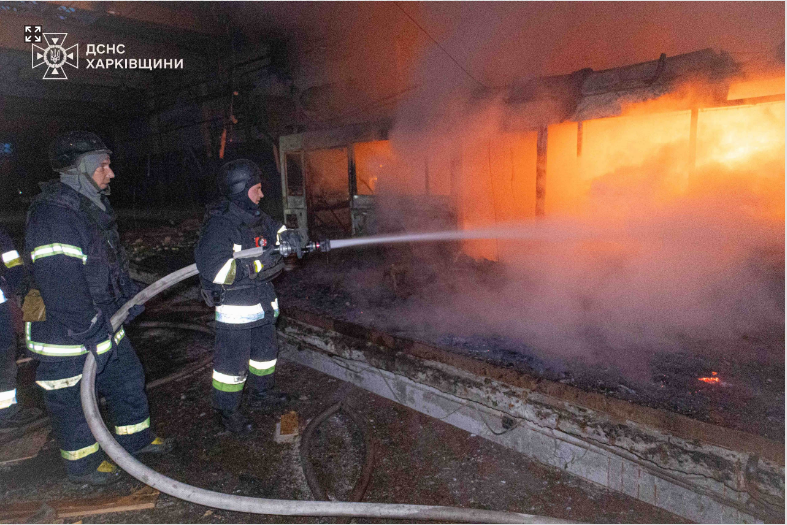 У місті Ізюм внаслідок влучання БпЛА сталася пожежа у складській будівлі на площі 400 м кв. Постраждалих немає.