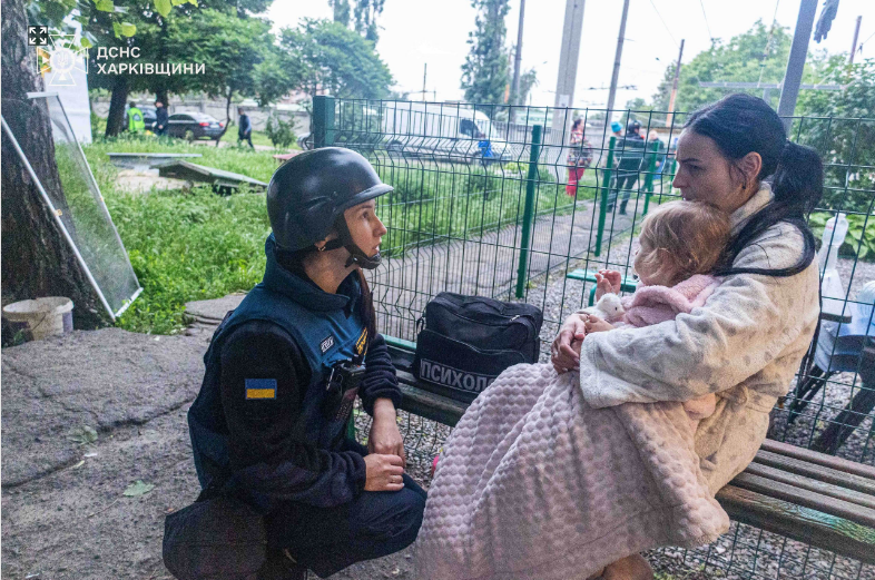 На місці події у Слобідському районі Харкова працювали психологи ДСНС, які надавали допомогу місцевим мешканцям.