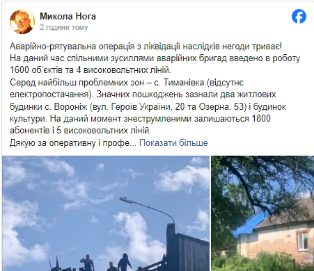 Серед найбільш проблемних зон залишається село Тиманівка, де повністю відсутнє електропостачання. Значних пошкоджень зазнали два житлові будинки в селі Вороніж (по вулицях Героїв України, 20 та Озерна, 53) – там повністю зірвало дахи. Постраждав і місцевий будинок культури.