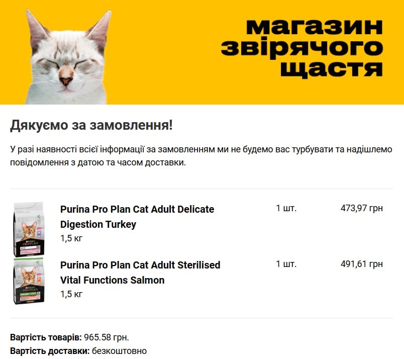 У нас залишилось трохи більше 900 гривень — і ми замовили корм також для шістьох котиків журналістки з Херсона Наталі Верлатої, чий будинок росіяни знищили 8 червня у Херсоні. Наталя прихистила котиків і доглядала за ними. Зараз, коли родина змушена фактично почати життя з нуля, підтримка пухнастиків, яких вони рятували раніше і врятували зараз, особливо цінна, тому корм вже їде до Херсона.