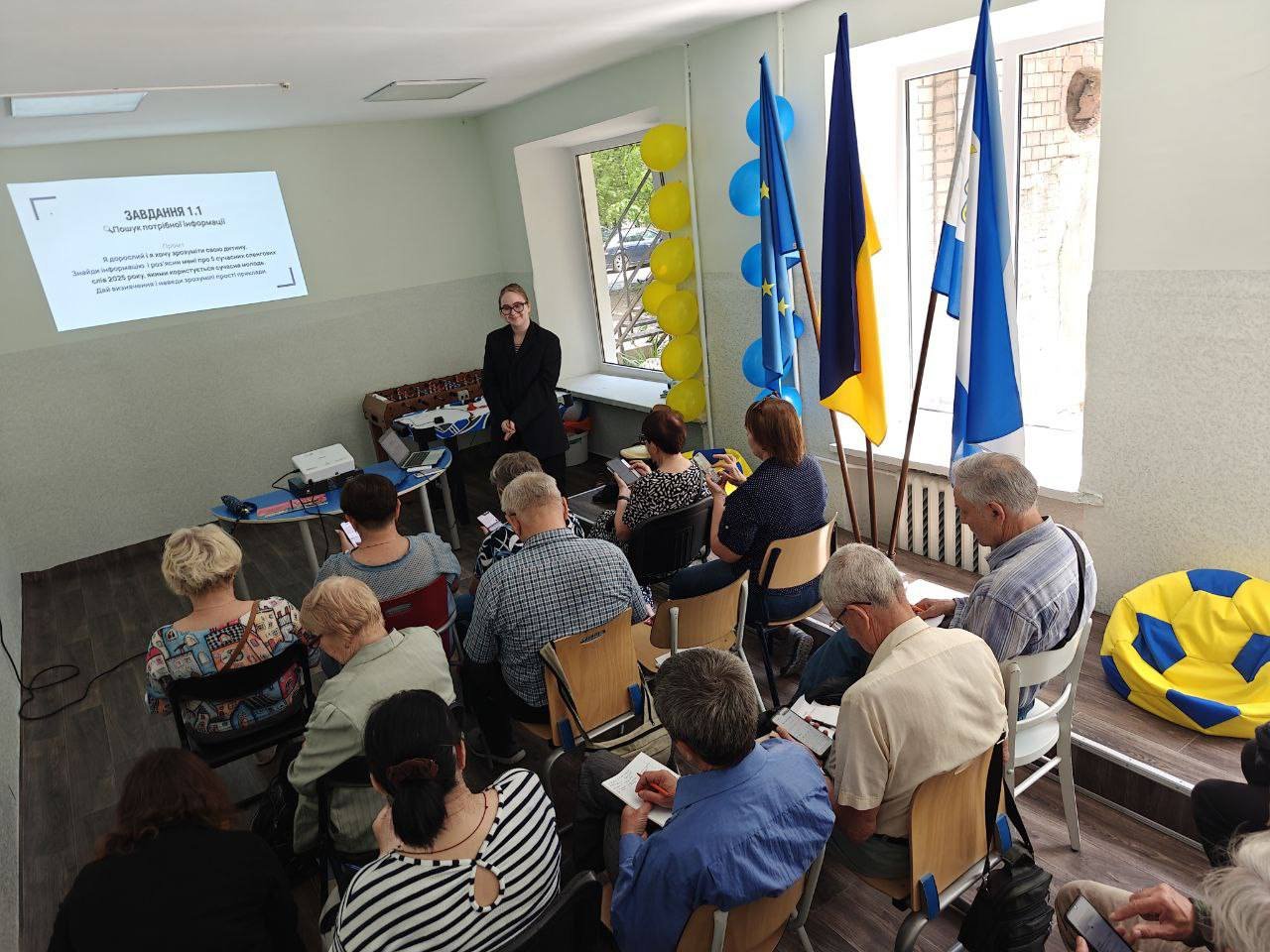 *Майстер-клас, що відбувся в Центрі допомоги 3 червня 2025 року, залучив представників старшого покоління внутрішньо переміщених осіб з Херсонщини, щоб начити їх, як дружити зі Штучним Інтелектом.