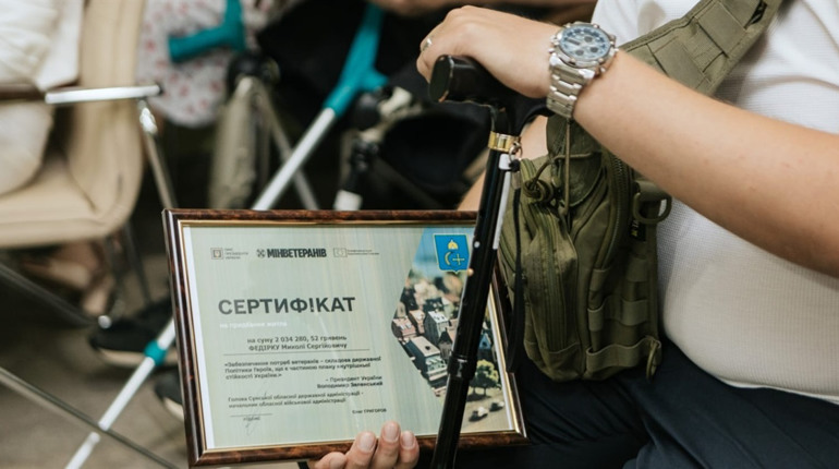 Вручення сертифікатів на житло стало можливим завдяки Президенту України Володимиру Зеленскому, Кабінету Міністрів України, Міністерству у справах ветеранів України за фінансової підтримки Європейського Союзу в рамках реалізації інструменту Ukraine Facility.