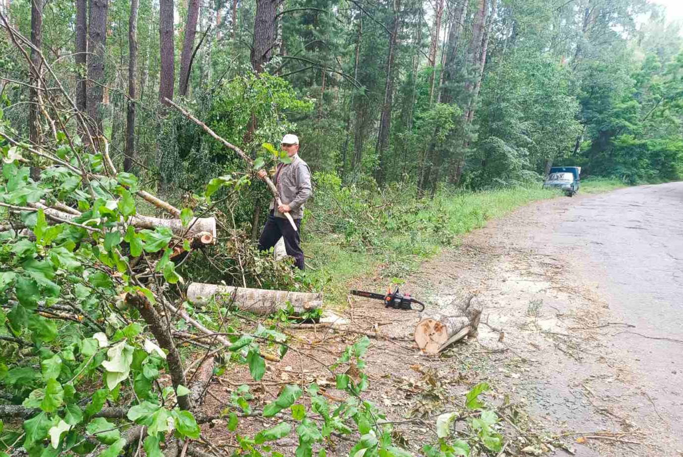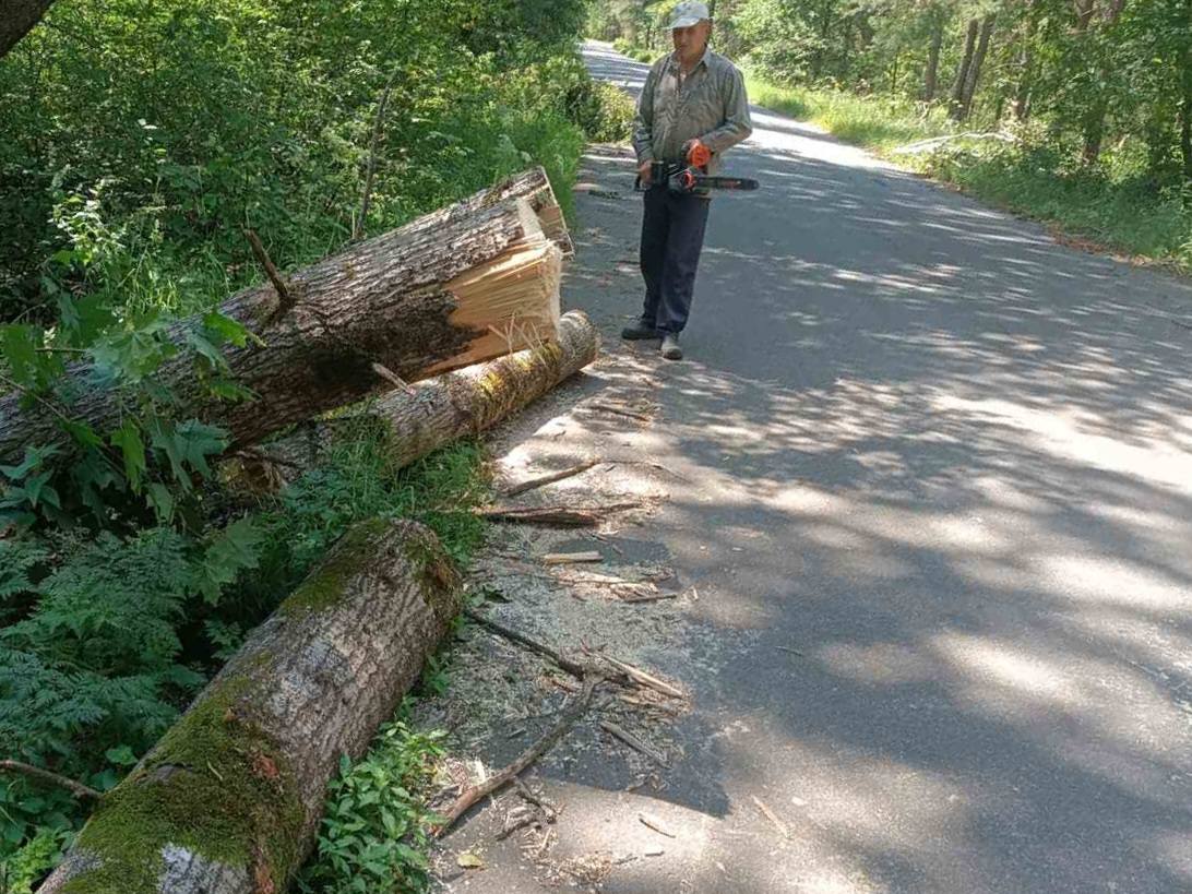 Анатолій та Олександр Савченки, розширили проїзд поміж стовбурами повалених негодою дерев, чим убезпечили рух в темний час доби всьогоавтотранспорту.