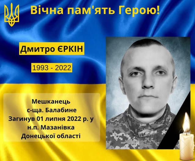Кушугумська громада втратила ще одного свого сина — Єркіна Дмитра Сергійовича, мешканця селища Балабине (14.03.1993 – 01.07.2022).