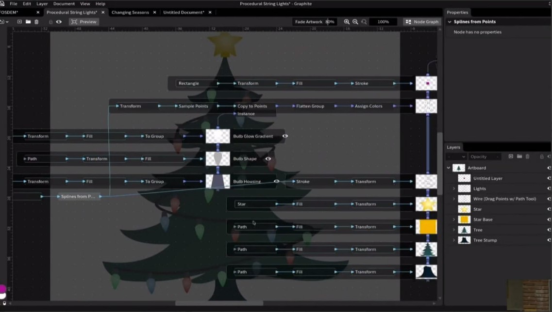 Graphite — це 2D‑редактор для створення векторної та растрової графіки. Його головна перевага — поєднання традиційного редагування з сучасним процедурним робочим процесом на основі вузлів. Усе, що ви робите, залишається неруйнівним: можна повернутися, змінити чи додати нові ефекти без втрати попередніх результатів.