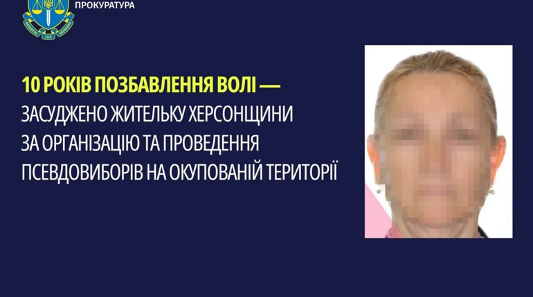 За публічного обвинувачення прокурорів Херсонської обласної прокуратури суд визнав жінку винною у колабораційній діяльності (ч. 5 ст. 111-1 КК України). Вона отримала 10 років позбавлення волі з конфіскацією майна та позбавленням права обіймати посади в органах державної влади, місцевого самоврядування та займатися діяльністю, пов’язаною з виборчим процесом і референдумами, строком на 15 років.