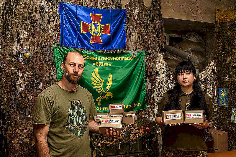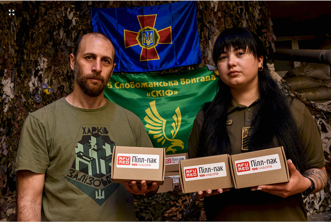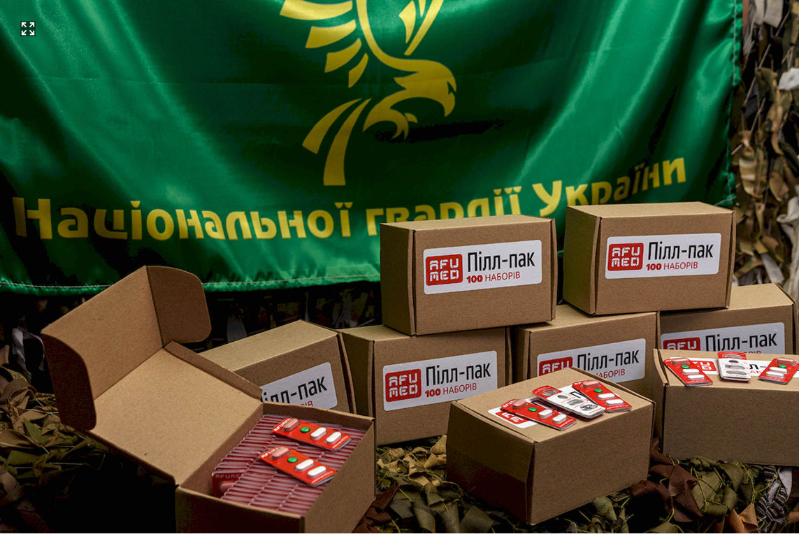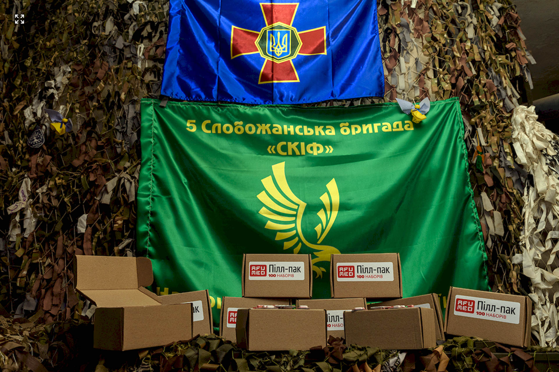 Перша партія «рill pack» у кількості 1000 наборів вже передана волонтерами нашій 5 Слобожанській бригаді «Скіф» НГУ.