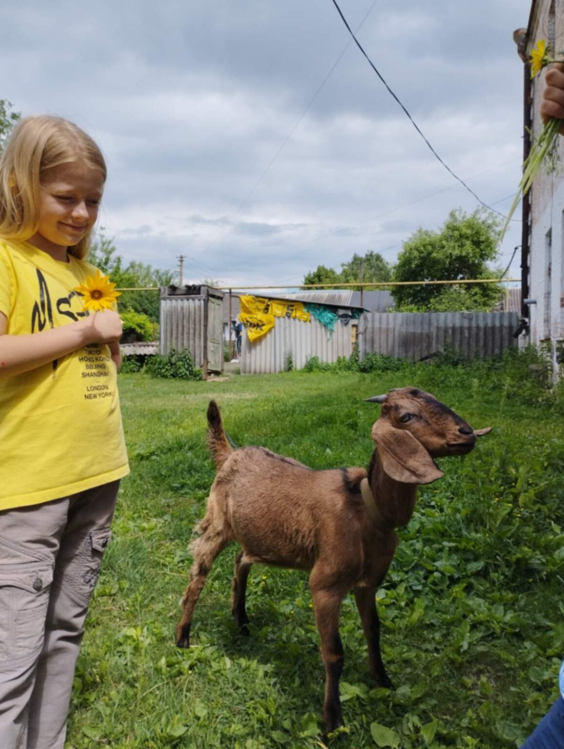 «А потім ми переїхали в інше село, щоб бути поближче до рідної домівки, але ворог і там почав все обстрілювати. Тато знову вирішив шукати інше місце, тож наша родина переїхала до сел. Кириківка. Він говорить, що відстань від нашого будинку до нинішнього – 25 км. Та згодом усіх нас, – дівчинка на мить задумалася і почала загинати пальці, рахуючи членів своєї родини, – одинадцятеро, поселили в невеличкий будиночок, сюди вибухи доносяться поки що тільки здалеку, і мені не так уже страшно, як удома. Там мені було найкраще, але коли я боялася, починав боліти живіт, і не хотілося нічого їсти. Вдома у мене є своя кімната, іграшки. А ще було багато друзів, із якими я завжди гуляла на вулиці. Я дуже, дуже, дуже хочу додому», – дівчинка наполягала на тому, щоб у статті про неї написали декілька разів слово «дуже», передаючи її відчуття, щоб усі зрозуміли, настільки сильно вона хоче повернутися у рідну домівку. – «Сьогодні я можу хоча б виходити на вулицю погуляти, – каже дівчинка, – а вдома я сиділа в будинку. Я вже тут познайомилася з дівчатками – Лерою і Катею».
