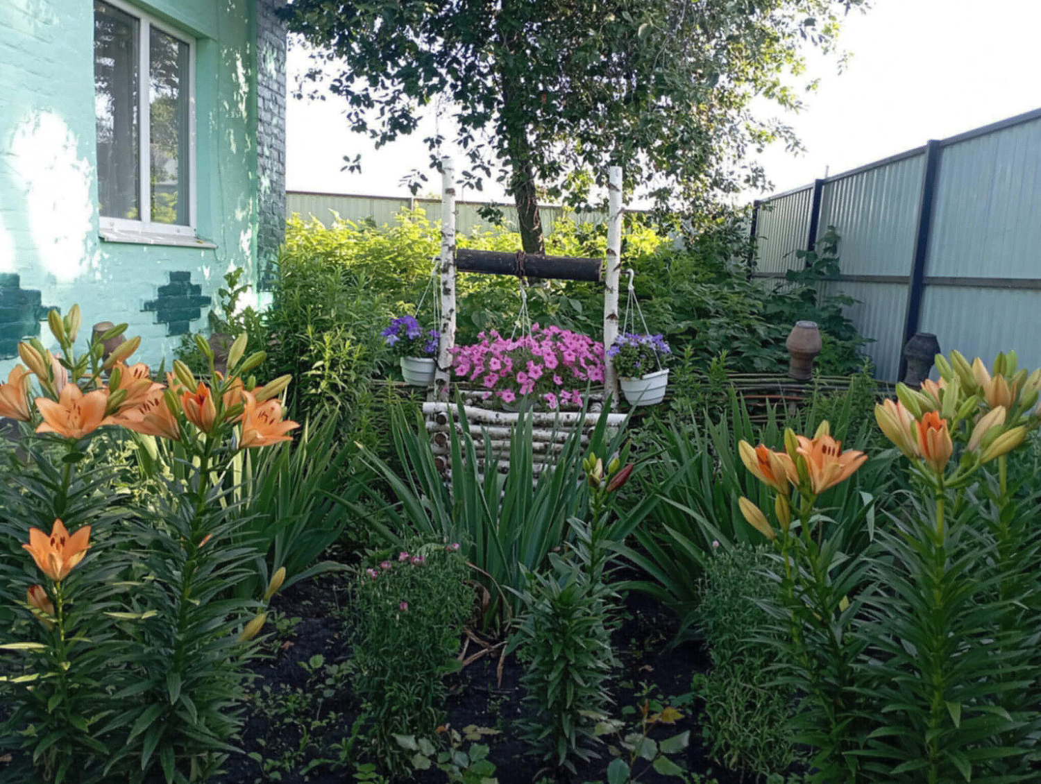 – Мені подобається, що в дворі гарно і яскраво, – каже пані Ольга. – Безумовно, біля рослин багато роботи, але я дбаю про них із радістю. Рано-вранці пішла полила, ввечері – також. Ну і вдень, якщо спека. У вільну хвилину вириваю на квітниках бур’яни. Окрім цього звісно ж є і інша робота по господарству та на землі, але на квіточки в мене завжди вистачає і часу, і сил.