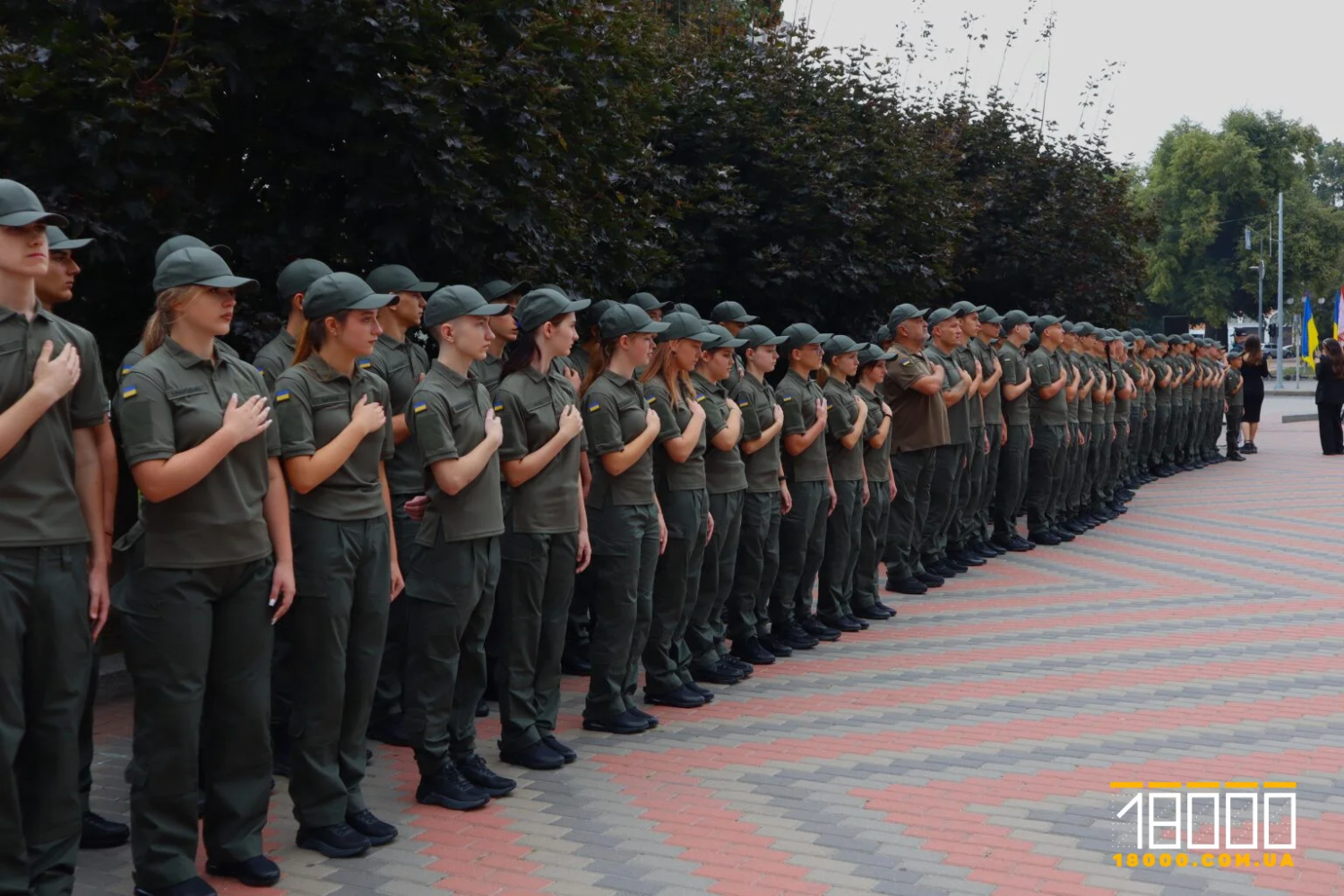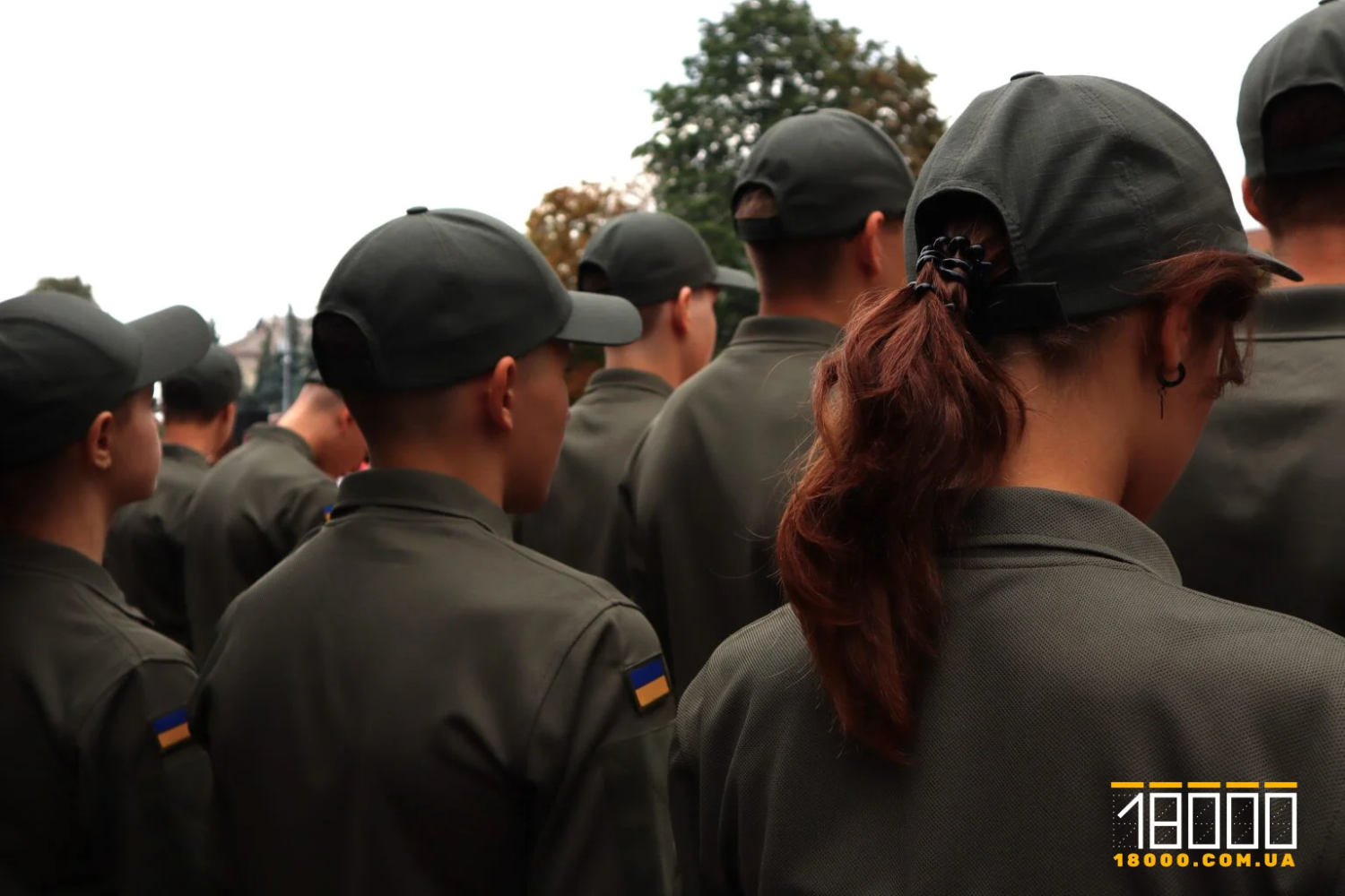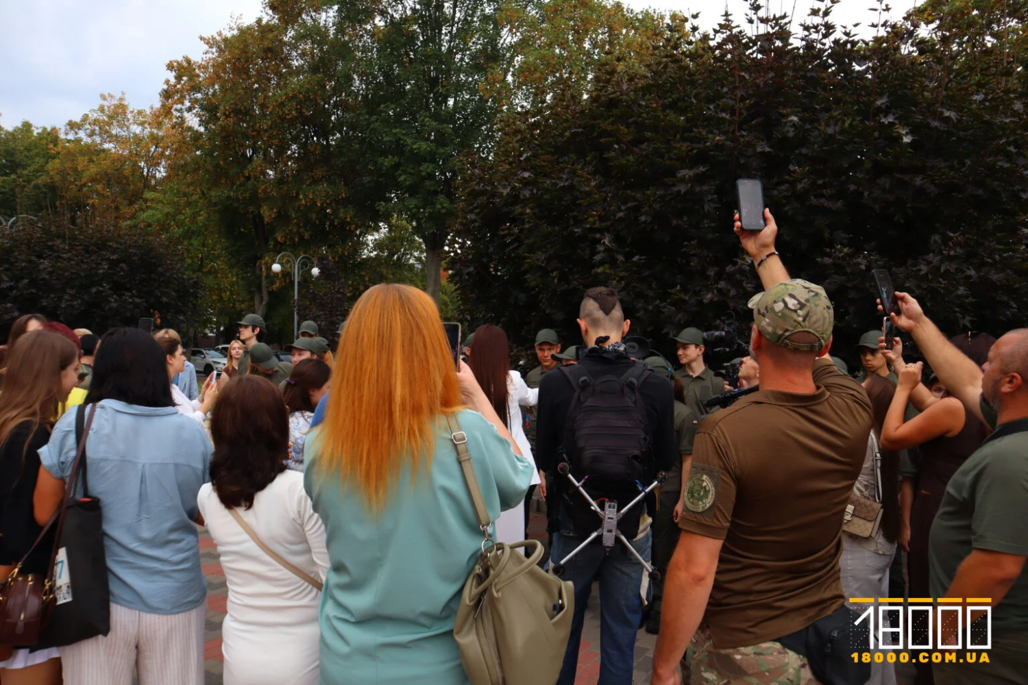 Замість шкільного подвір’я новоспечені ліцеїсти зібралися на площі біля пам’ятника борцям за волю України. Три класи вишикувалися один за одним. Поруч із кожним лише по одному дорослому – це офіцер-вихователь. Батьки ж поставали навпроти.