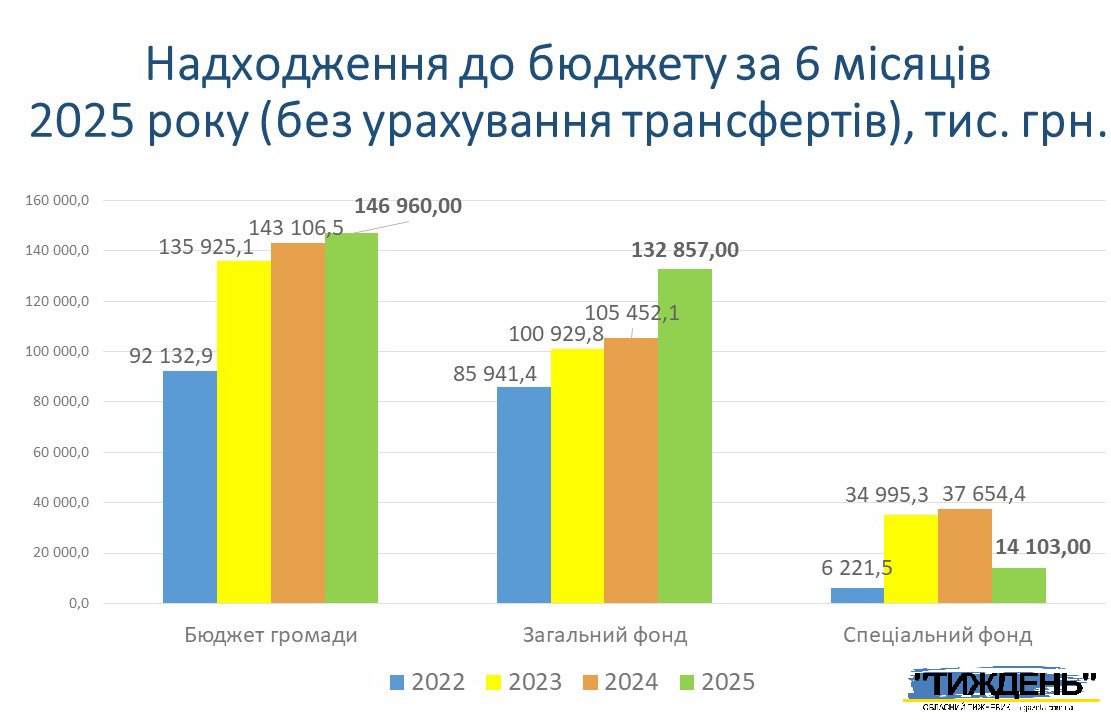 Власних доходів (загальний фонд) за січень-червень 2025 року надійшло в сумі 132 857,0 тис.гривень, що становить 100,6% запланованих призначень, сума перевиконання 810,9 тис.гривень. У порівнянні з аналогічним періодом минулого року надходження зросли на 27 404,9 тис.гривень, або на 26,0%.