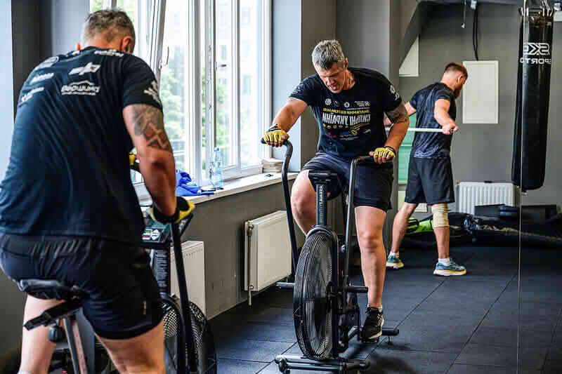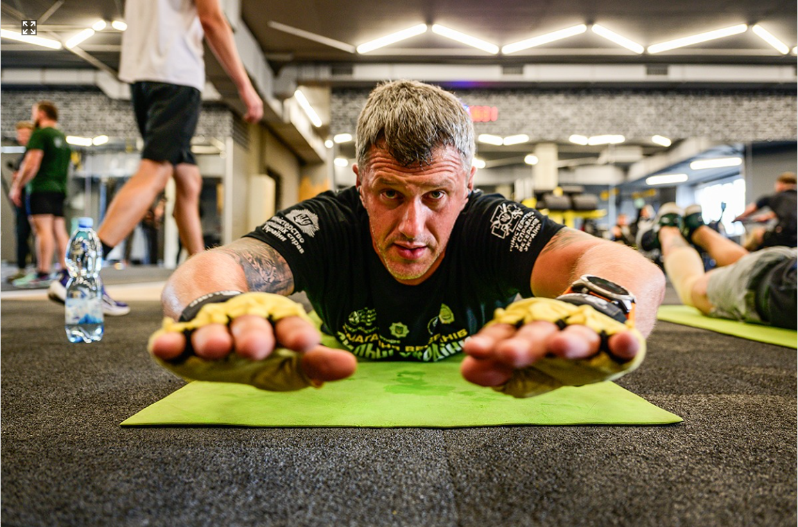 Готується вибороти своє місце у національній збірній змагань ветеранів та ветеранок гвардієць Олег з позивним Бельмондо. Чоловік займається на ейрбайку.