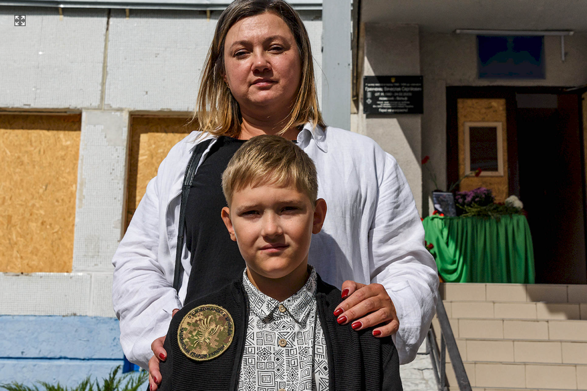 Мати, дружина та син нашого полеглого побратима, викладачі та учні школи, в якій 10 років – з 1986 по 1996 навчався Вячеслав, побратими та представники адміністрації району зібрались на відкриття меморіальної дошки на будівлі ліцею.