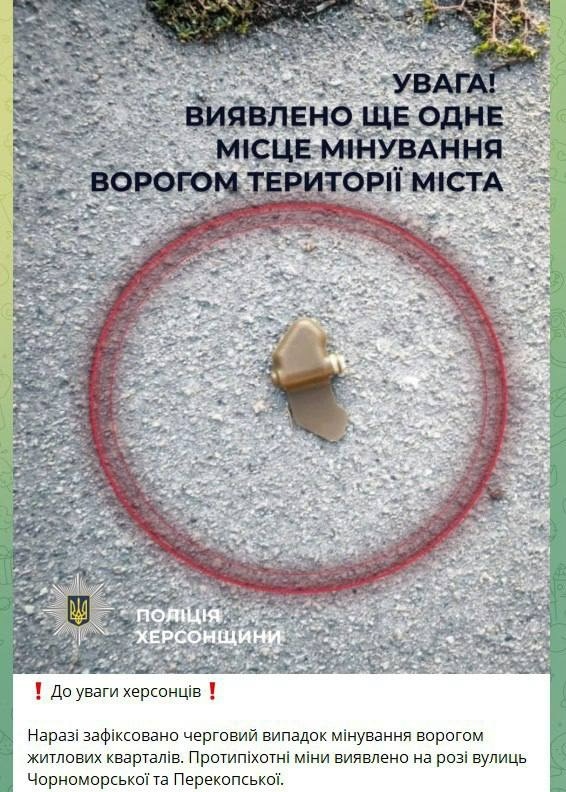Насправді саме російські війська систематично застосовують дистанційне мінування на правобережжі Дніпра. Фіксуються випадки встановлення мін-пасток та розкидання вибухонебезпечних боєприпасів у районах, де проживають або пересуваються цивільні. Це унеможливлює безпечну евакуацію, перетворює дороги та вулиці на смертельні пастки й щодня ставить під загрозу життя людей.