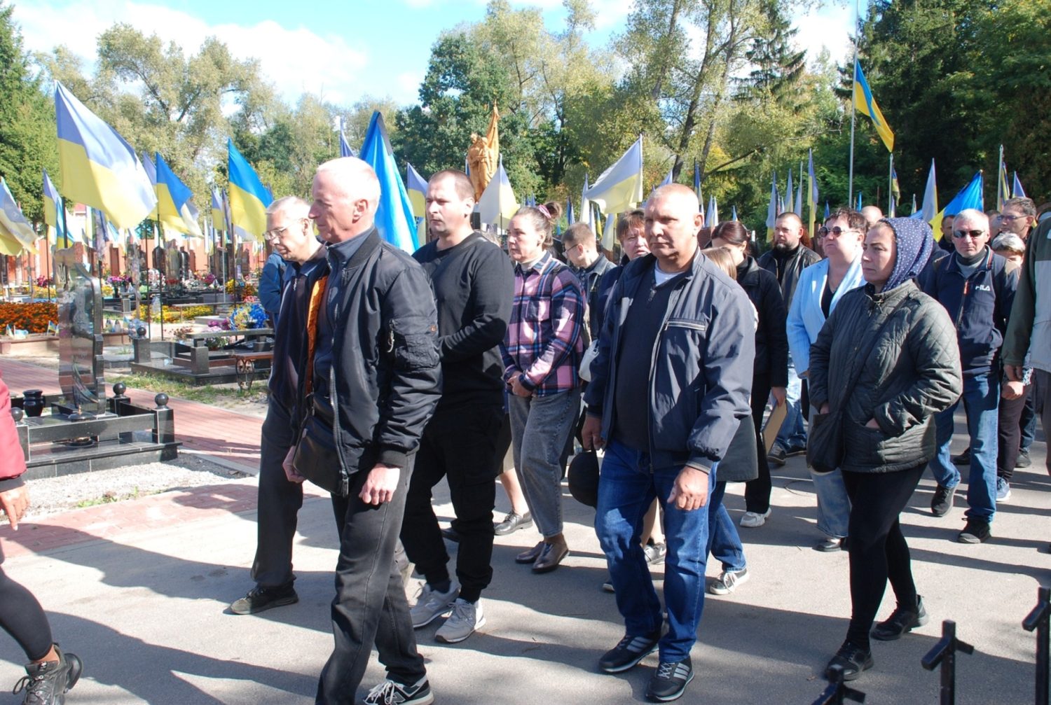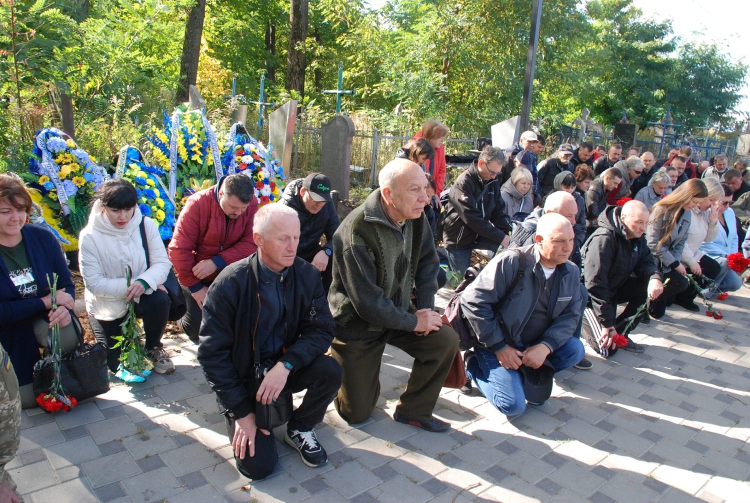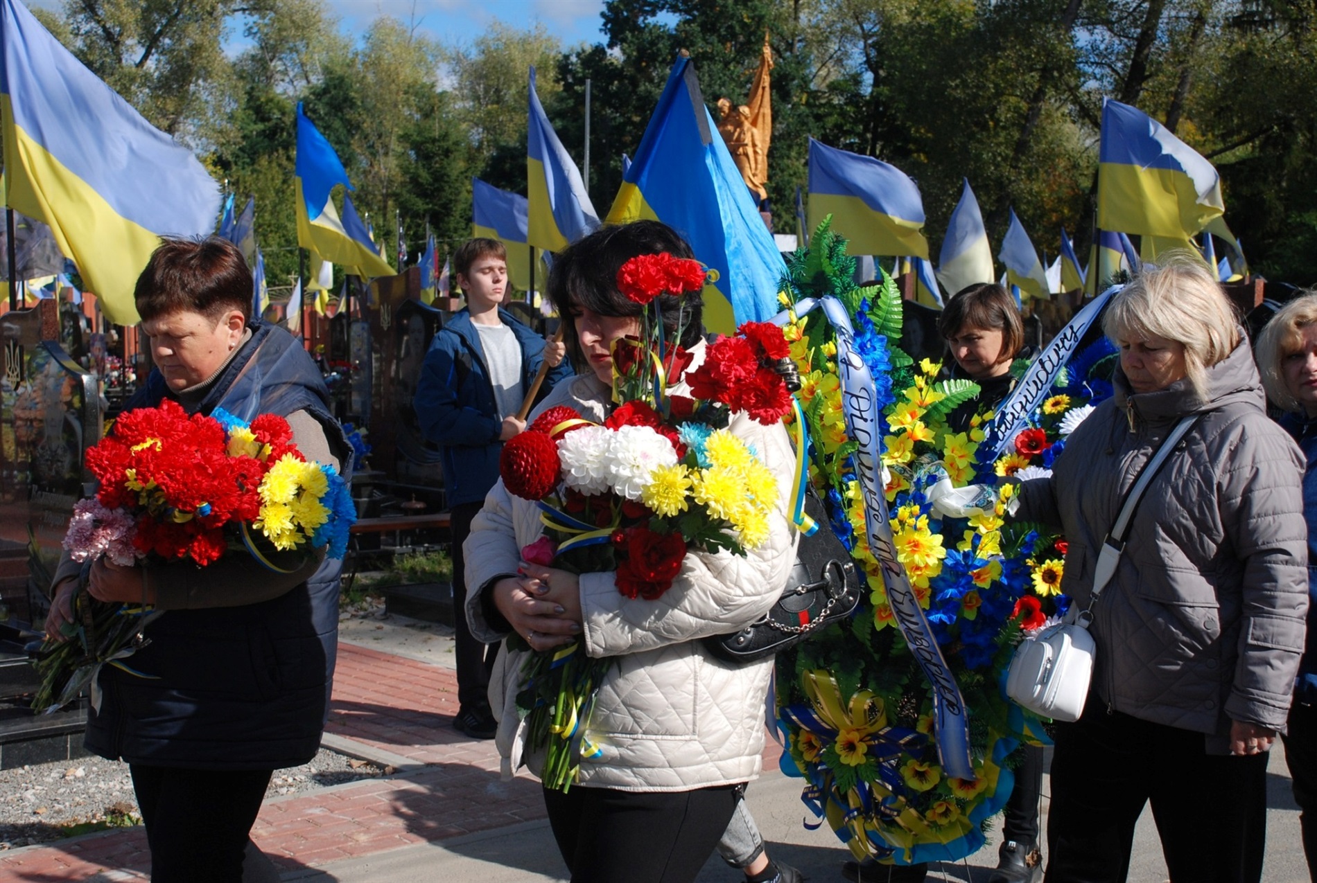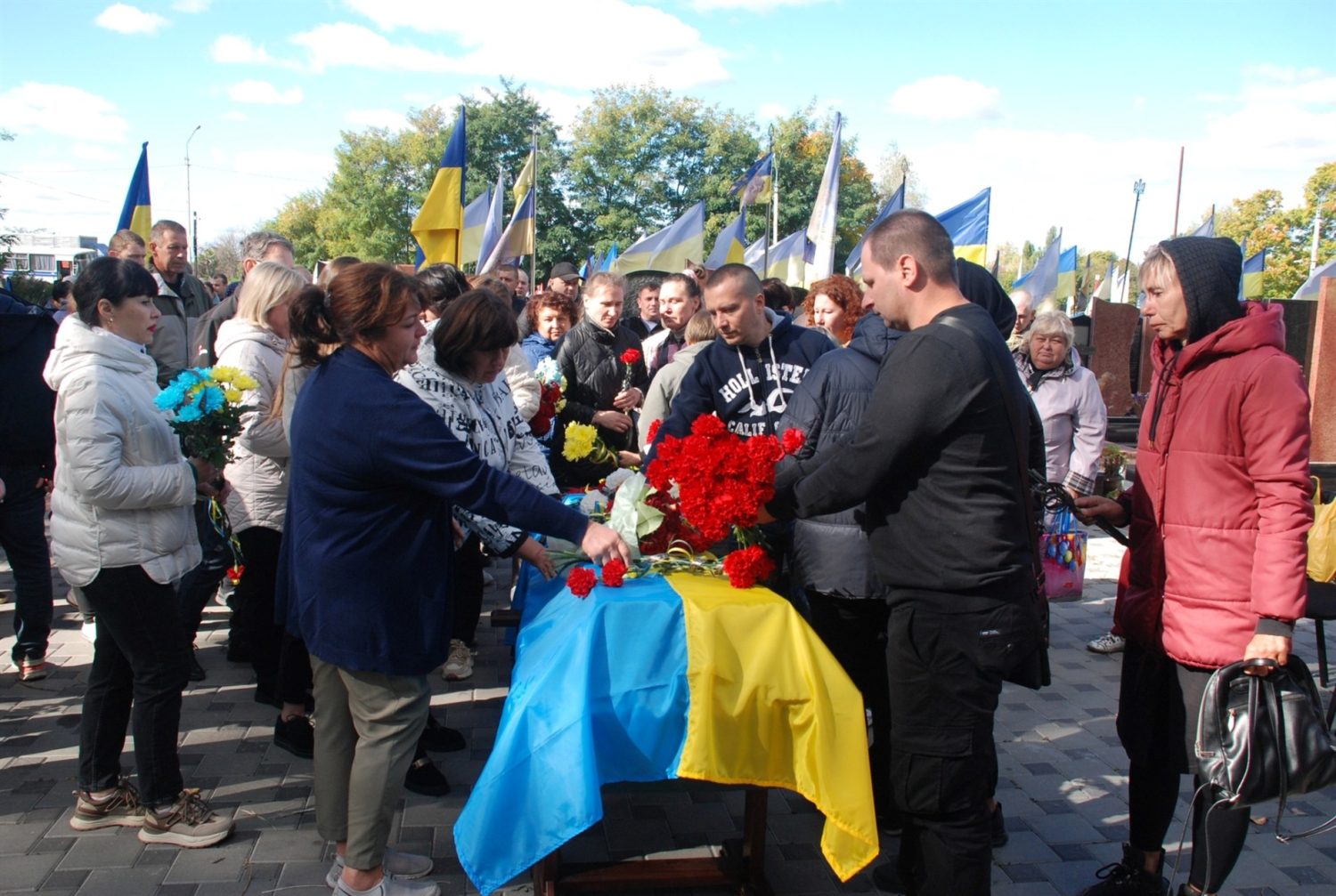 Побратим «Буковина» передав прапор 63 окремої механізованої бригади, яка воює під гаслом «Свободу здобуваємо в бою» директору школи ліцей В’ячеславу Василенко. Після прощальних слів на знак глибокої шани присутні схилили коліно, після чого поклали квіти до його труни. Героя поховали з усіма військовими почестями на Алеї Слави.
