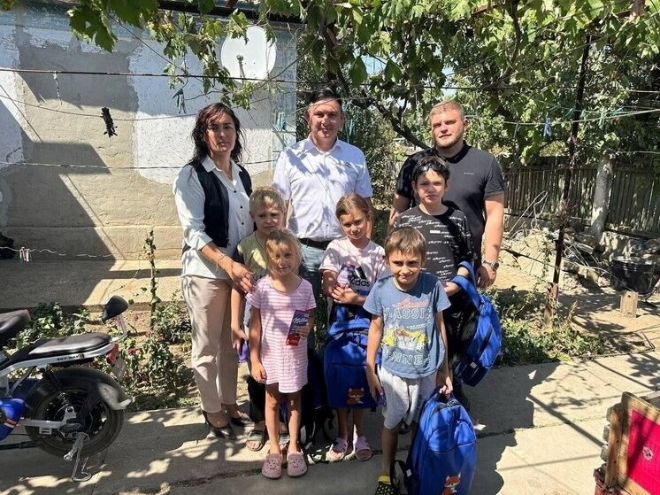 Жаміла Запускалова дарує подарунки від російської влади у Каланчаку у серпні 2025 року