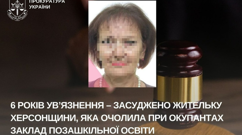 Суд визнав жінку винною у пособництві державі-агресору (ч. 1 ст. 111-2 КК України) та призначив покарання 6 років позбавлення волі з додатковим покаранням – позбавлення права займатися освітньою та виховною діяльністю строком на 10 років.
